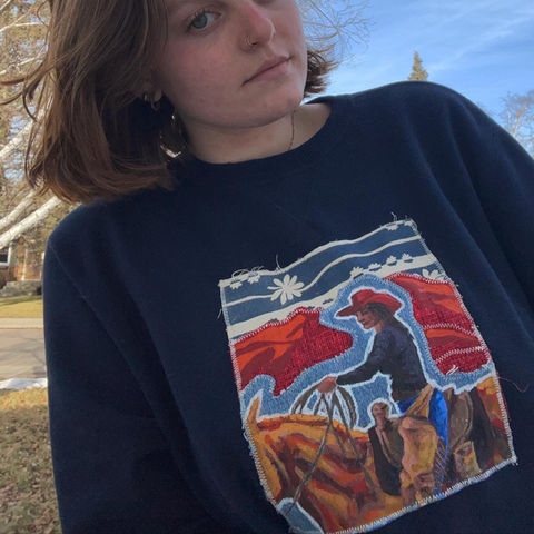 Anna hand carves block prints from linoleum and uses them to create one of a kind prints and also up-cycle thrifted clothing - giving them a new life